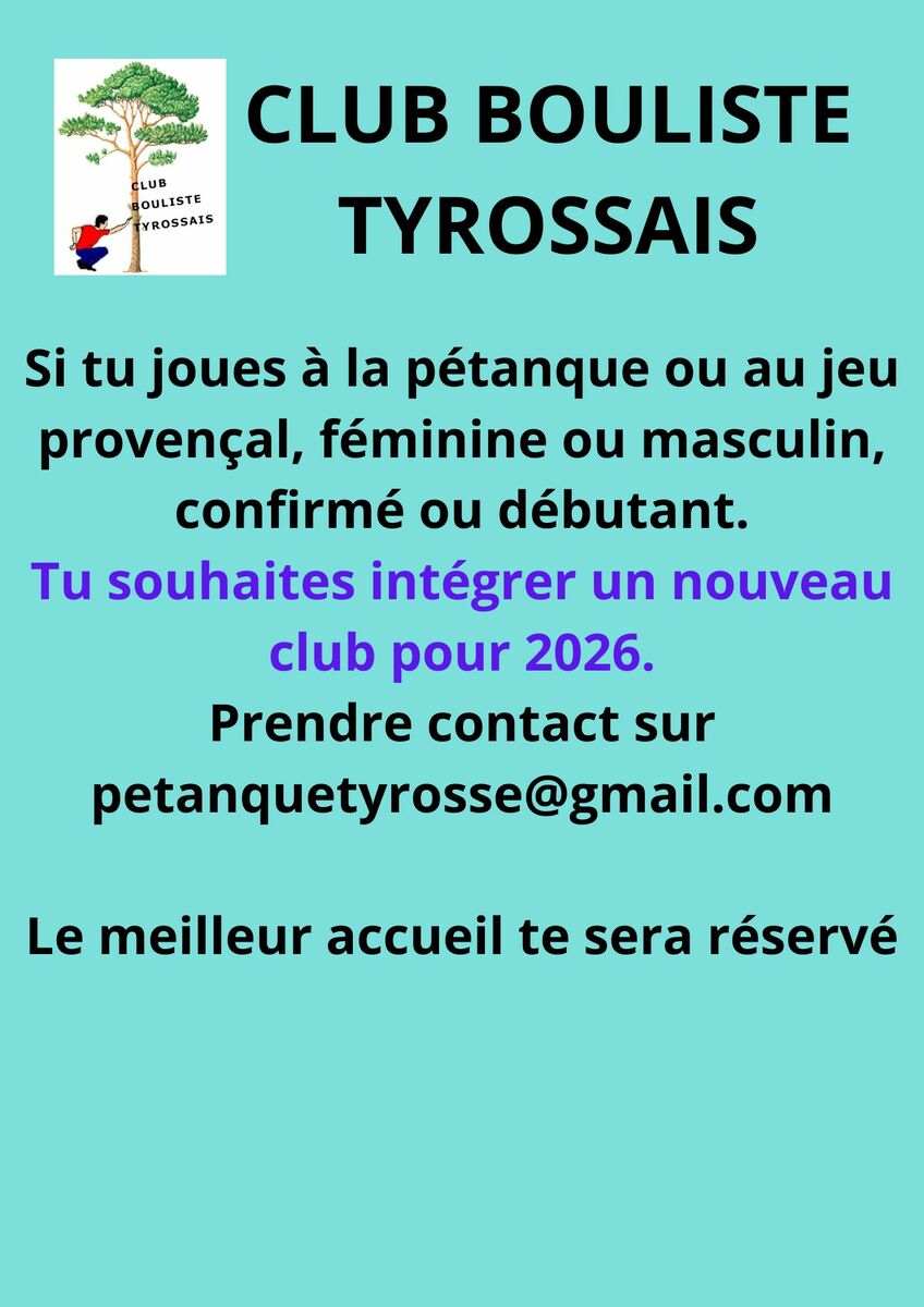 Joueuse ou joueur débutant ou confirmé, viens nous rejoindre Club Bouliste TYROSSAIS.